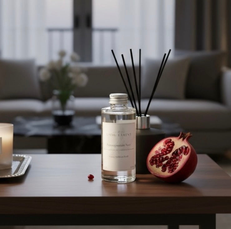Keep the sultry aroma alive with the Pomegranate Noir Diffuser Refill, an enticing combination of Black Pomegranate, Patchouli, and Cedarwood. Its natural vegetable base ensures longevity.